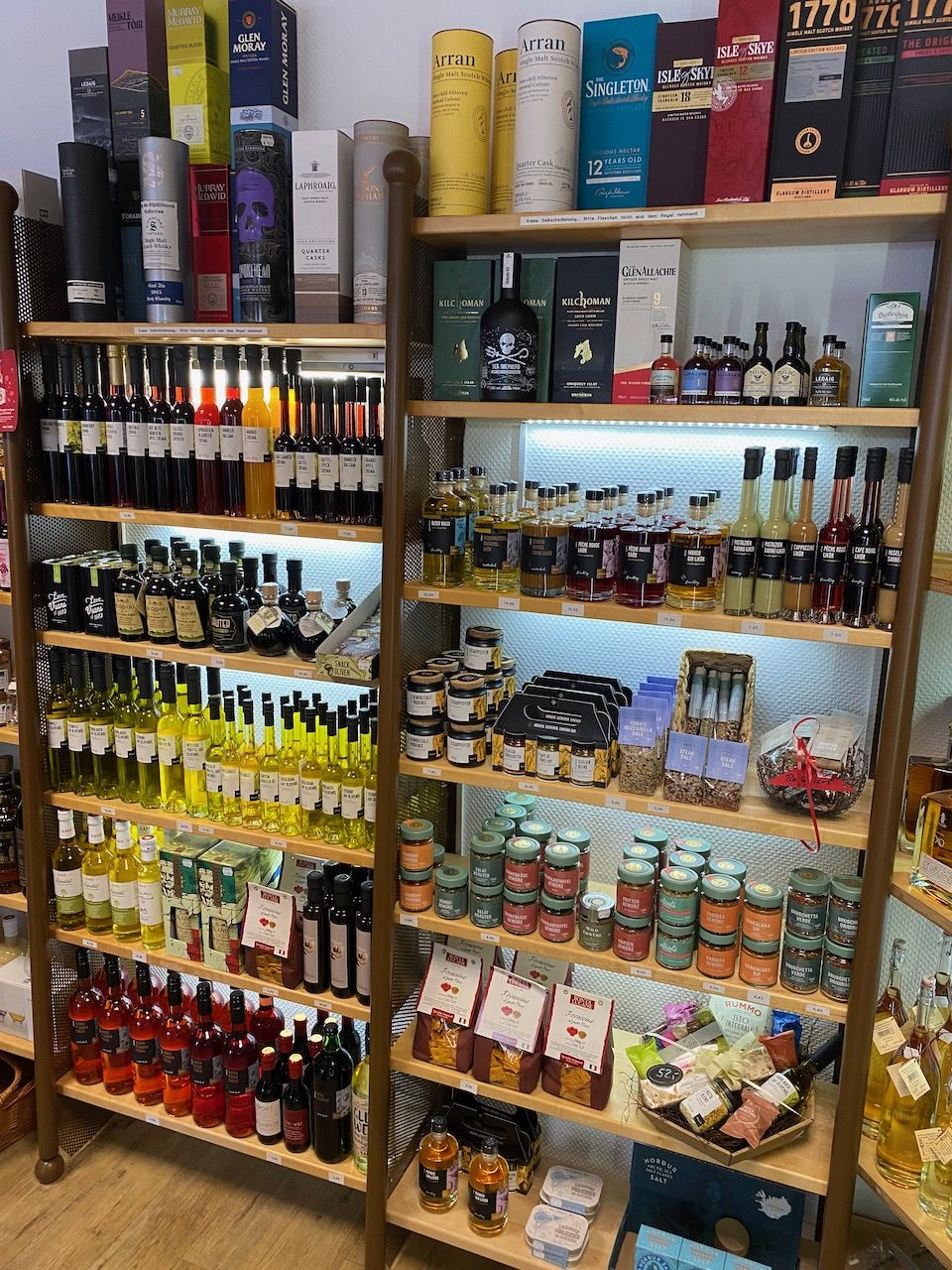 Ein weiterer Schwerpunkt liegt auf edlen Feinkost-Spezialitäten. Ob erlesene Tees, ausgesuchte Weine und Whiskys, feine Schokoladen, besondere Öle und Essige oder handverlesene Delikatessen – das Sortiment lädt zum Probieren, Genießen und Verschenken ein. Genussmenschen finden hier Kostbarkeiten, die man nicht an jeder Ecke entdeckt.